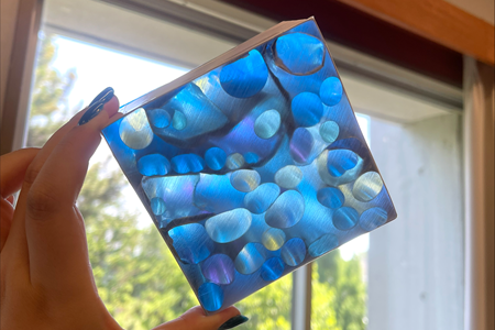 先生方の工夫を凝らした授業とダンスの仕事を両立させながら、自ら学ぶことの楽しさ、視野が広がることの喜びを実感しています。『小学校専修』は図画工作や家庭科の裁縫などオンラインでは難しい実技やグループワークが多く、対面授業を通して心強い友人もでき、情報交換をすることで自信や安心感を得ることができました。仕事を離れ、結構な頻度で通う武蔵野キャンパスでの対面授業は、新鮮な気持ちになることができ、とても快適です。通学の電車では、テキストを開いて時間を有効活用しています。写真は「造形」の授業で作った作品です。