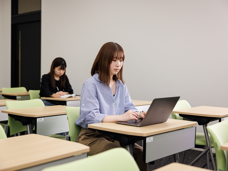 オンライン授業または対面授業のいずれかを選択できる科目もご用意。「基本はオンライン、特定の科目だけキャンパスへ」といった柔軟なスタイル設計が可能です。
