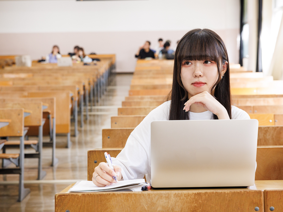 キャンパスの空気感に触れ、教員や学友と語り合う「リアルな体験」。そして、場所や時間に縛られずに知を深める「オンラインの利便性」。伝統と革新が共存する武蔵野大学だからこそ提供できる、ハイブリッドな学修環境がここにあります。