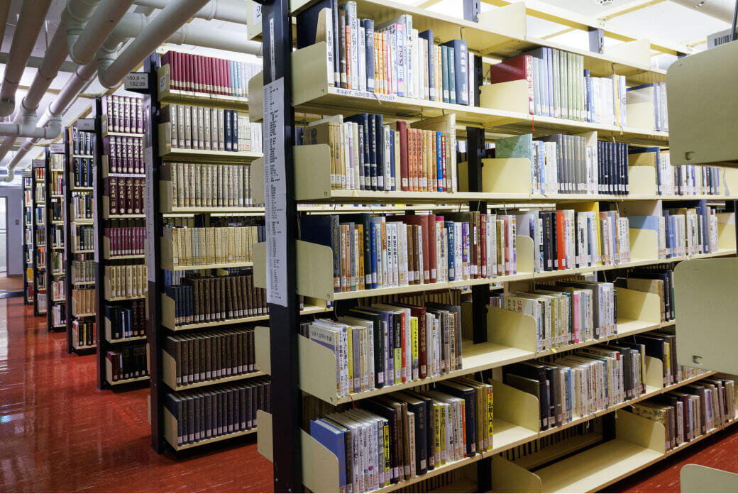 中層階の図書館エリアでは、専門書や資料を手に取りながら、静かな環境で自習ができます。スクーリング後の復習や調べものにも最適です。