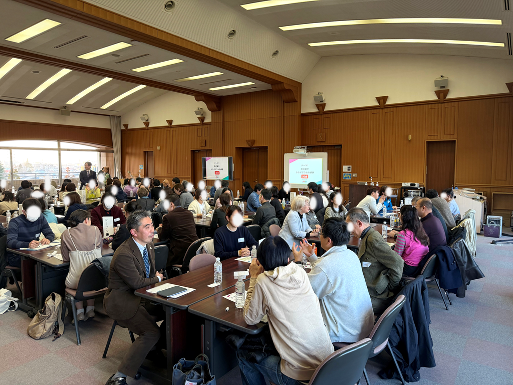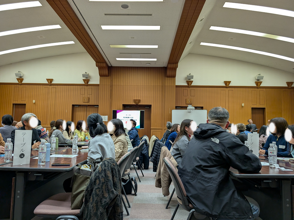 当日は、同キャンパスで開催された通信教育部シンポジウム「『世界の幸せをカタチにする。』とは?」から引き続き参加される方も多く、会場には約70名の在学生が来場!そこに教員やスタッフも加わり、総勢90名を超える熱気あふれる一大イベントとなりました。全国それぞれの場所で学ぶ学生たちが一堂に会した、活気あふれる当日の様子をレポートします!