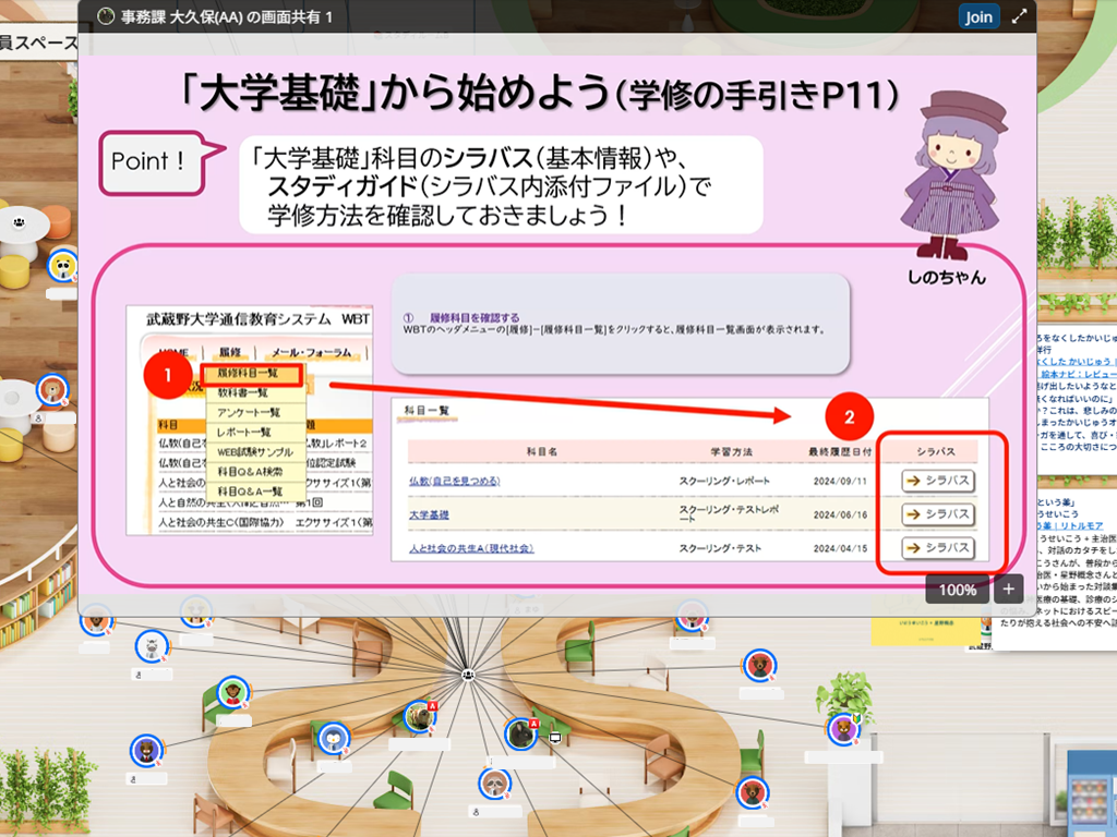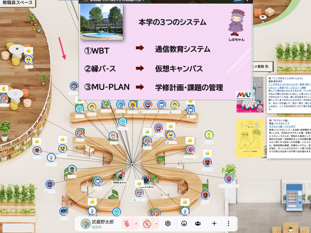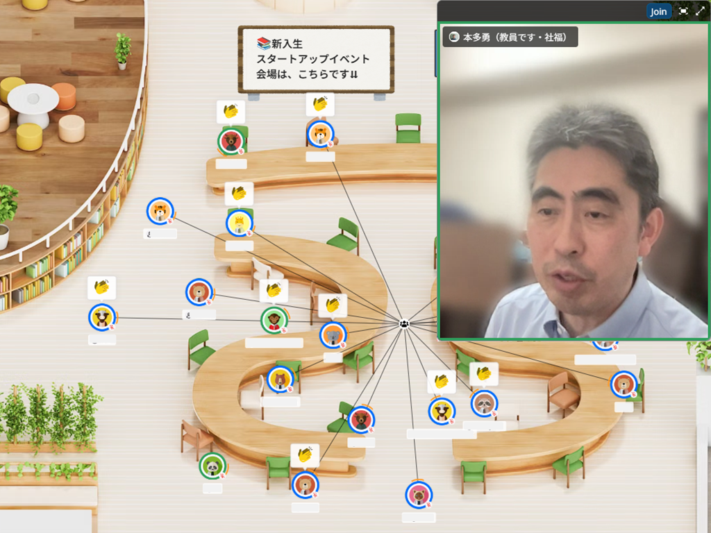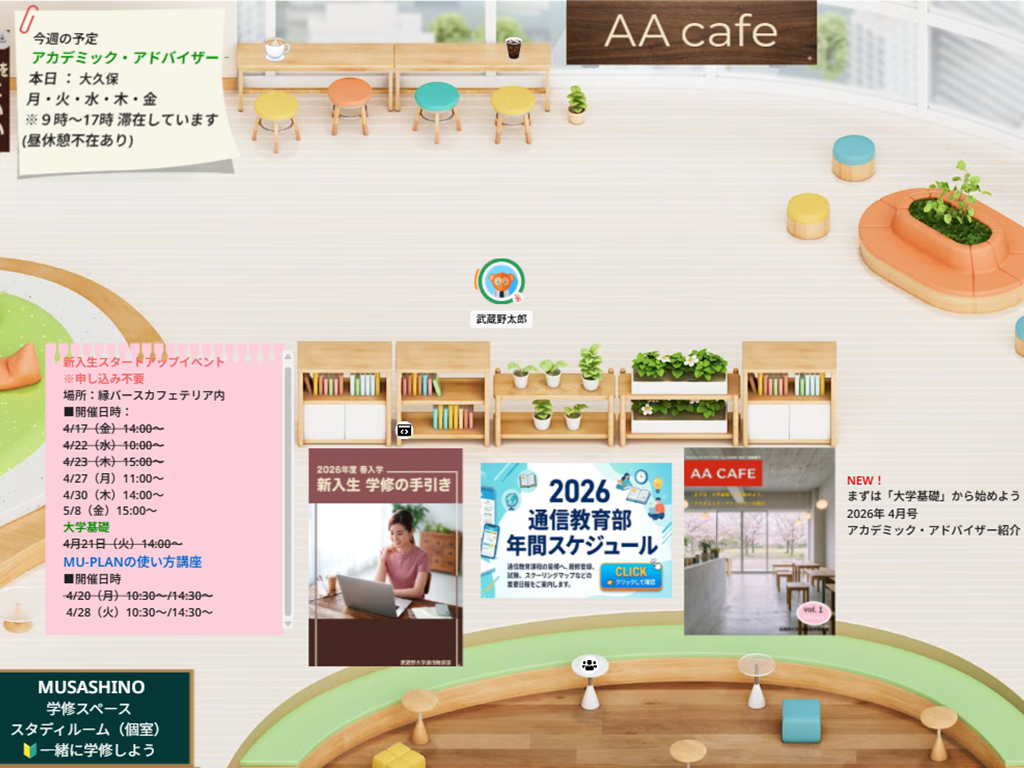 ガイダンス後の「迷い」を即座に解消するのが、卒業生の先輩「アカデミック・アドバイザー(AA)」や教職員による日常的なサポートです。5月にかけて、メタバースキャンパス「縁バースキャンパス」を中心に、利便性を追求した在学生向けイベントを連日開催しています。